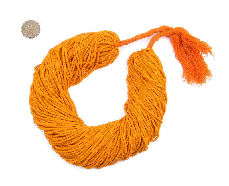 Beautiful strand of orange tiny glass seed beads from Afghanistan. These beads measure 1x2mm, with a hole size of . Handmade in a village not far from the Afghan-Pakistan border, these small treasures are fruition of a timeless tradition of bead-making that dates back centuries. Multiple strands pictured. Each strand sold individually.