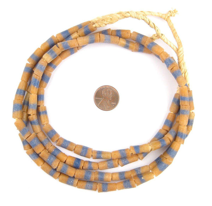 Orange and Blue Sandcast Powder Glass Beads (2 Strands)