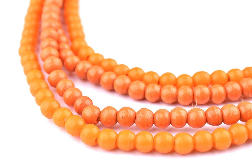 Take a look at these orange glass baby padre beads from Nigeria. These little beads are great as spacers or to add character to your jewelry designs. Two strands pictured. Each strand is sold individually. Shade of orange may vary from photo. Try them today!