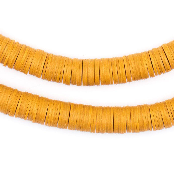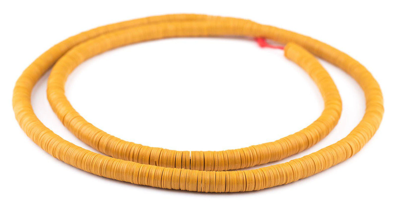 Take a look at this beautiful strand of African vinyl beads orange color. Beads such as these are found in Ghana and Nigeria where they are sometimes worn as waist beads. Older versions of vinyl beads were said to be made from recycled phonograph records. This strand measures approximately 36" long with individual beads measuring 0.28 x 8mm. These beads are light and fun to wear and also versatile for jewelry designs. Each strand is sold individually.