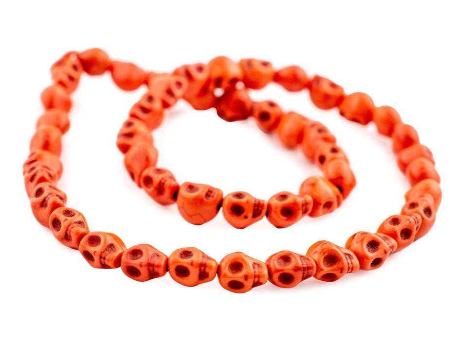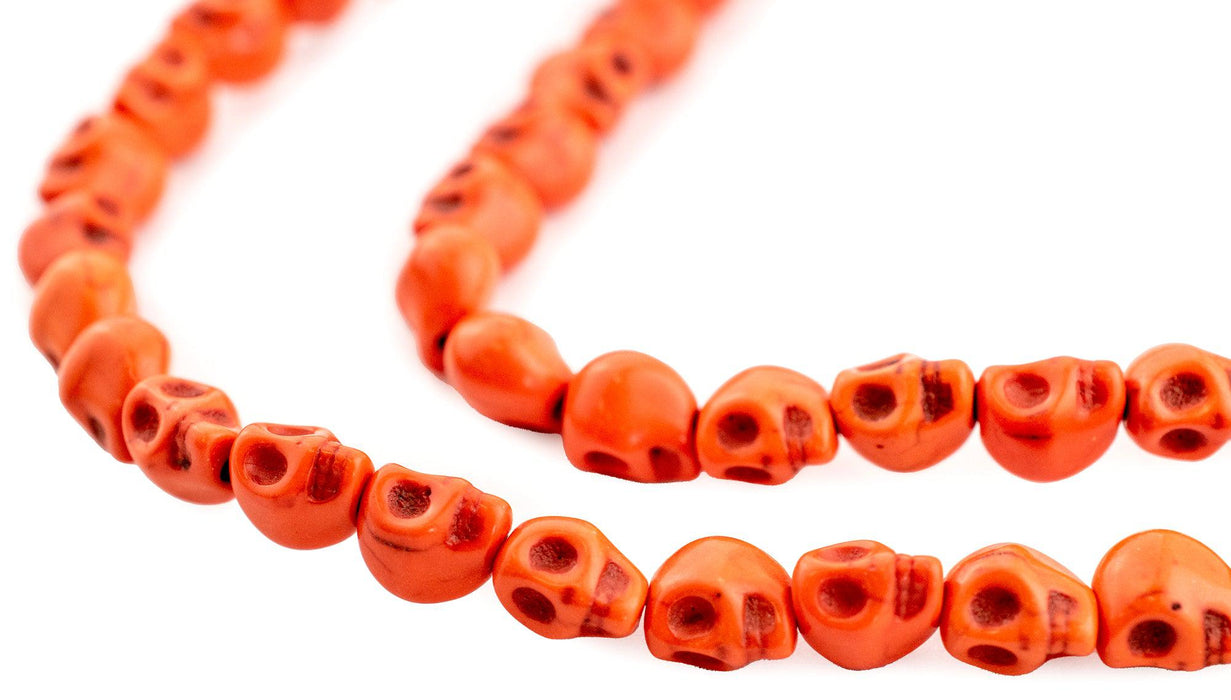 Take a closer look at these charming stone beads. Coming in a vibrant neon orange tone these carved skull beads can be designed with in a subtle or eye-catching way. Perfect for Halloween and Fall craft projects, as well as, goth and punk style inspired jewelry designs. Each bead measures about 8 x 6mm with a hole size of approximately 1mm. You will receive a full strand measuring roughly 15". Add a pop of neon orange to your design kit today!