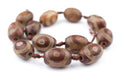 Take a look at these hand-patterned Tibetan agate beads. The special character of this stone bead is apparent by the unique translucence of the beads. Each of these beautiful oval beads measures approximately 20-22 x 16mm. Each strand may show slight variation in color and pattern.