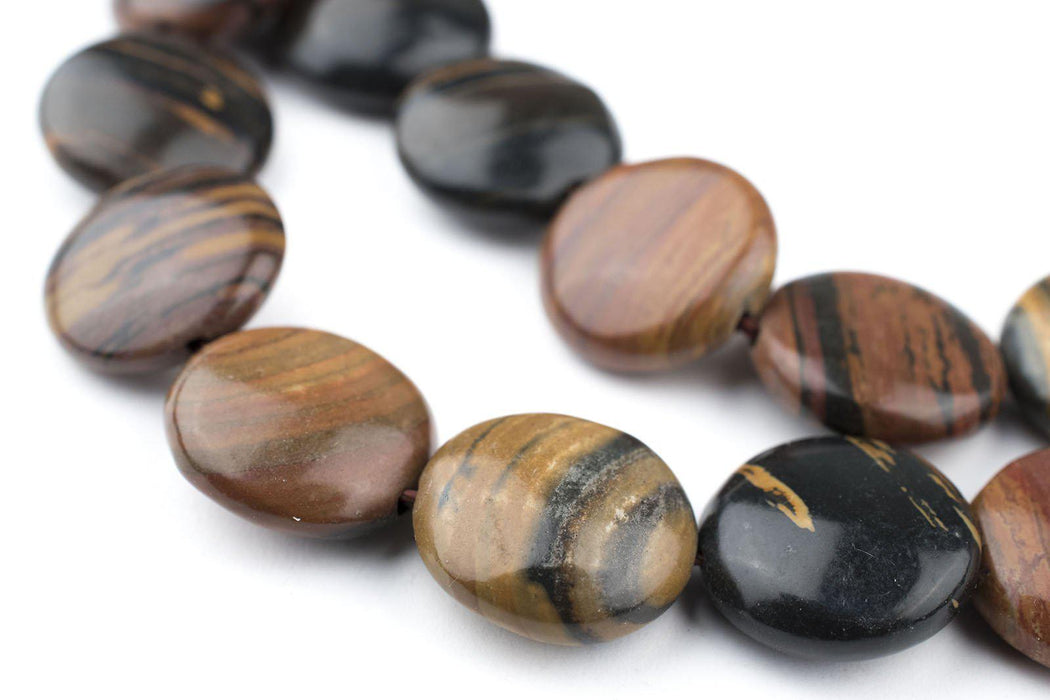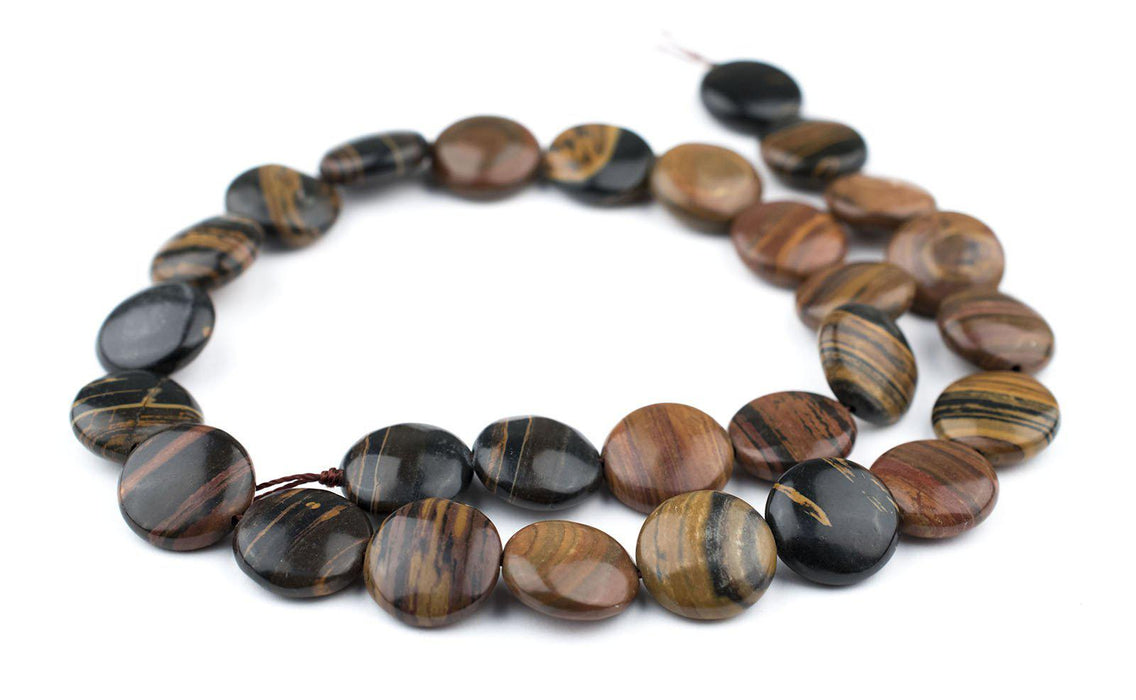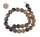 Colloquially referred to as "African Opal", these brown stone beads have a rich texture that is hard not to notice. Mined in Africa, the stone for these beads offers a beautiful mosaic of natural brown tones. Each bead measures approximately 14mm diameter, with strands measuring 16". Hole size is approximately 1mm. May be used as spacers or accents on your creative creations.