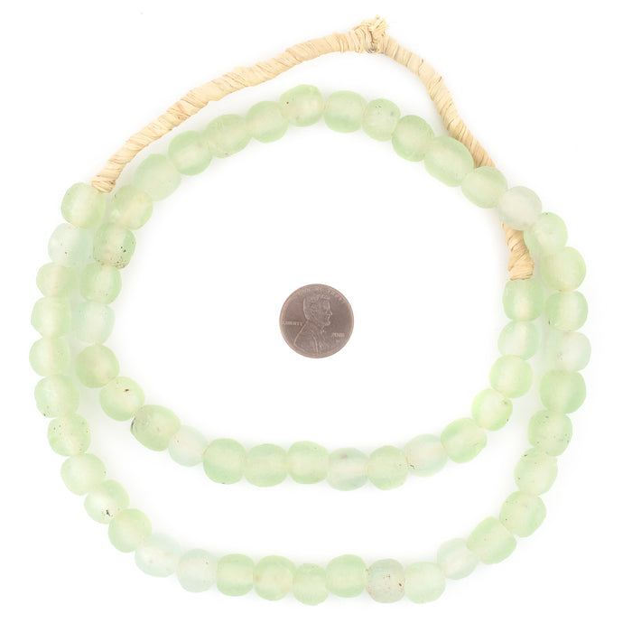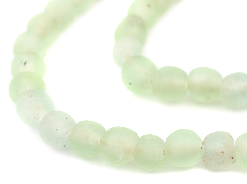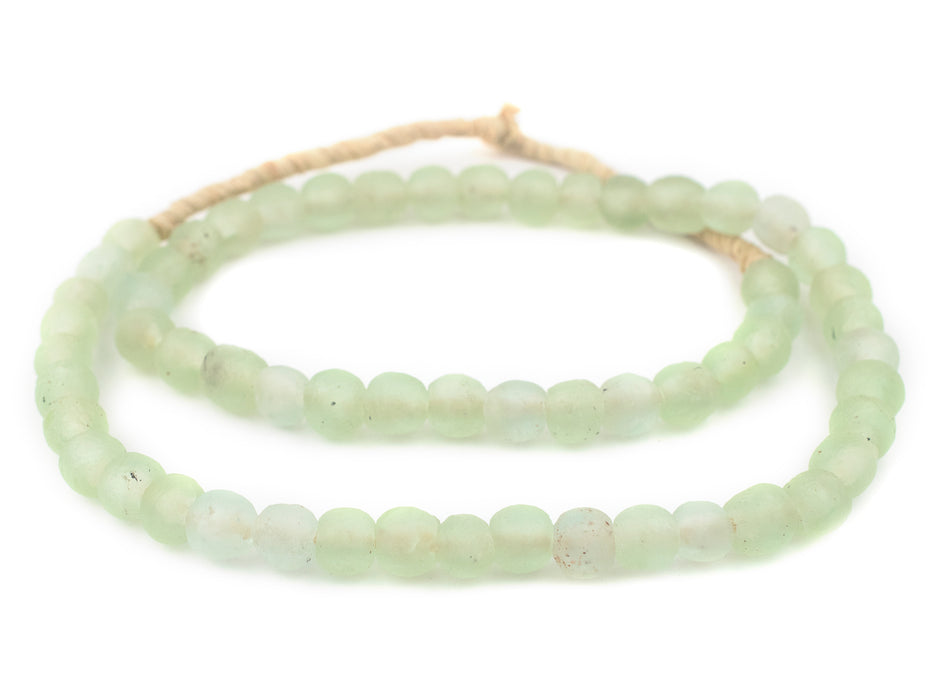 From the scenic villages of Ghana, these stunning artisan Pastel Green Recycled glass beads are made by hand by talented craftsmen. Beads like this are great to use in both custom jewelry design projects and interior design projects. Every strand is approximately 28" in length. Each bead is about 8-12 x 10-11mm with a roughly 2mm hole. Each strand is sold individually. Grab a strand for yourself today!