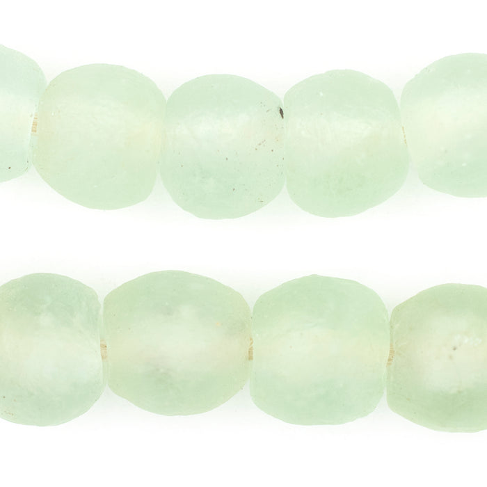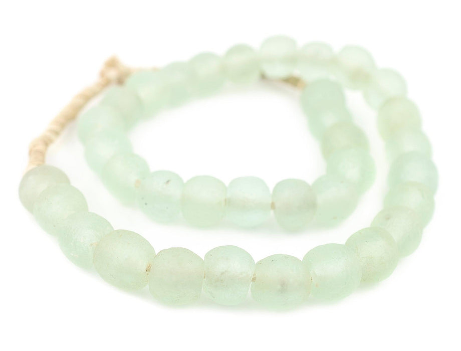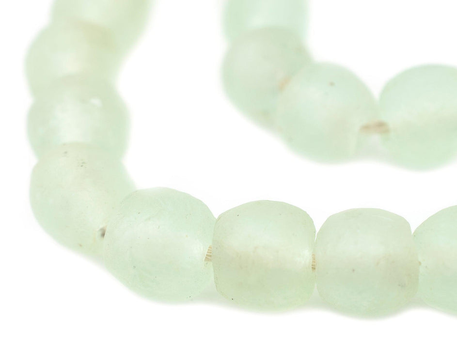 These great beads are made by the Krobo People of Ghana, Africa. Powder glass beads are made by crushing glass to a fine powder and heating it so that the particles fuse together. The glass is then poured into clay molds, with a cassava leaf stem used to make the hole. They are baked in an oven and the glass fuses and the cassava stem burns up. This technique has been used in Africa for centuries. Each bead measures approximately 14-16 x 17-18mm with a hole size of approximately 3mm. You will receive a full strand measuring approximately 27".