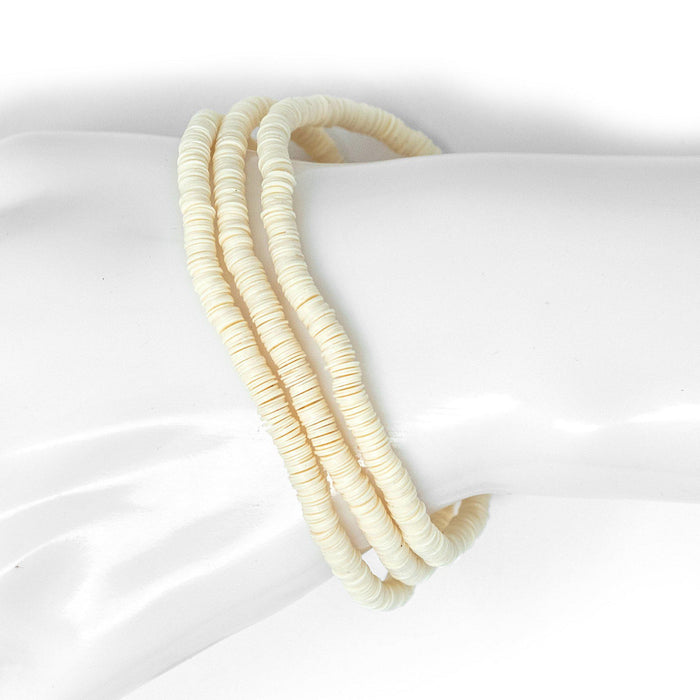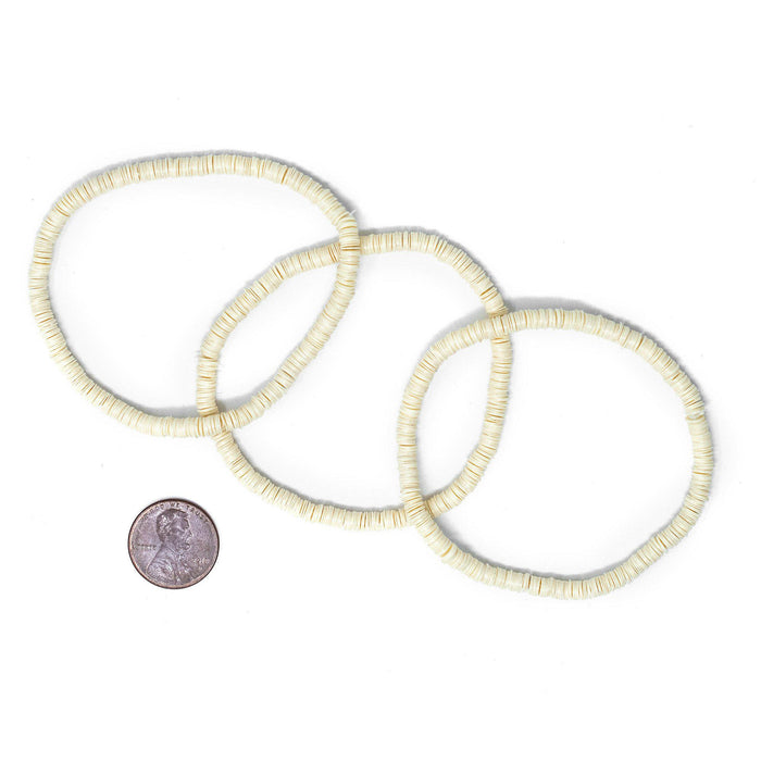 This beautiful piece of jewelry is made using vinyl beads, which are traditional to Ghanaian culture. While vinyl beads are most commonly worn around the waist, these beautiful bracelets pay tribute to West African culture while taking on a more versatile use. Each set of beads is strung on an elastic cord which will stretch over your wrist or ankle. The bracelet has an outer diameter of approximately 7.5 inches. Multiple bracelets may be pictured, however each bracelet is sold individually. Available in twenty different colors. Mix and match your favorite colors to create your own personal stack! The beads can also be repurposed into your own jewelry creations. They measure approximately 4mm in diameter with a hole size of approximately 1mm. Get yours today!