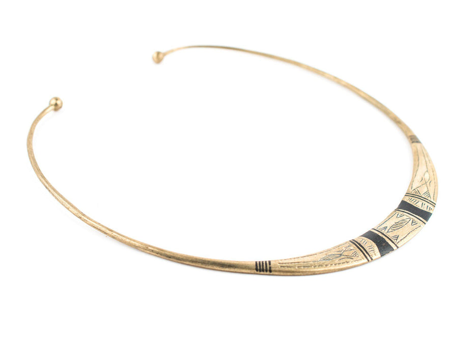 This choker necklace is fashioned in a traditional Tuareg Design. Inhabiting large swathes of the Saharan Desert, the Tuareg people are known for the quality of the metalwork and then ability to live under harsh conditions. This finished piece may worn alone or together with other Tuareg jewelry such as bracelets, cuffs, rings, and pendants. Limited supply.