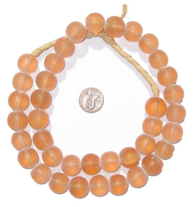 Powder glass beads are made by crushing glass to a fine powder and heating it so that the particles fuse together. The glass is then poured into clay molds, with a cassava leaf stem used to make the hole. They are baked in an oven and the glass fuses and the cassava stem burns up. This technique has been used in Africa for centuries.