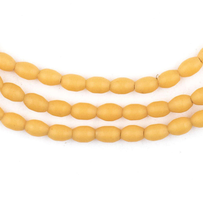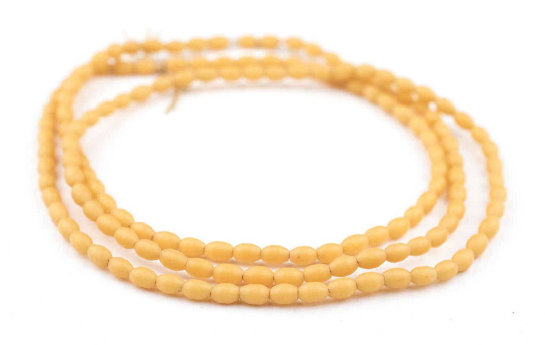 These vintage orange glass beads were originally produced in Czechoslovakia and sent to West Africa in the mid-20th century. Crafted in an oval shape, similar to the grain of rice, they are often referred to as "rice beads." Due to their vintage nature, they are becoming increasingly difficult to find. Each bead measures approximately 6 x 4mm with a hole size of 1mm. Strands measure approximately 32". Limited supply available. Get yours today!