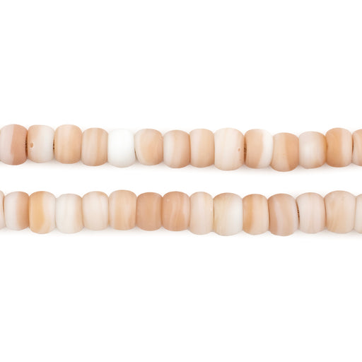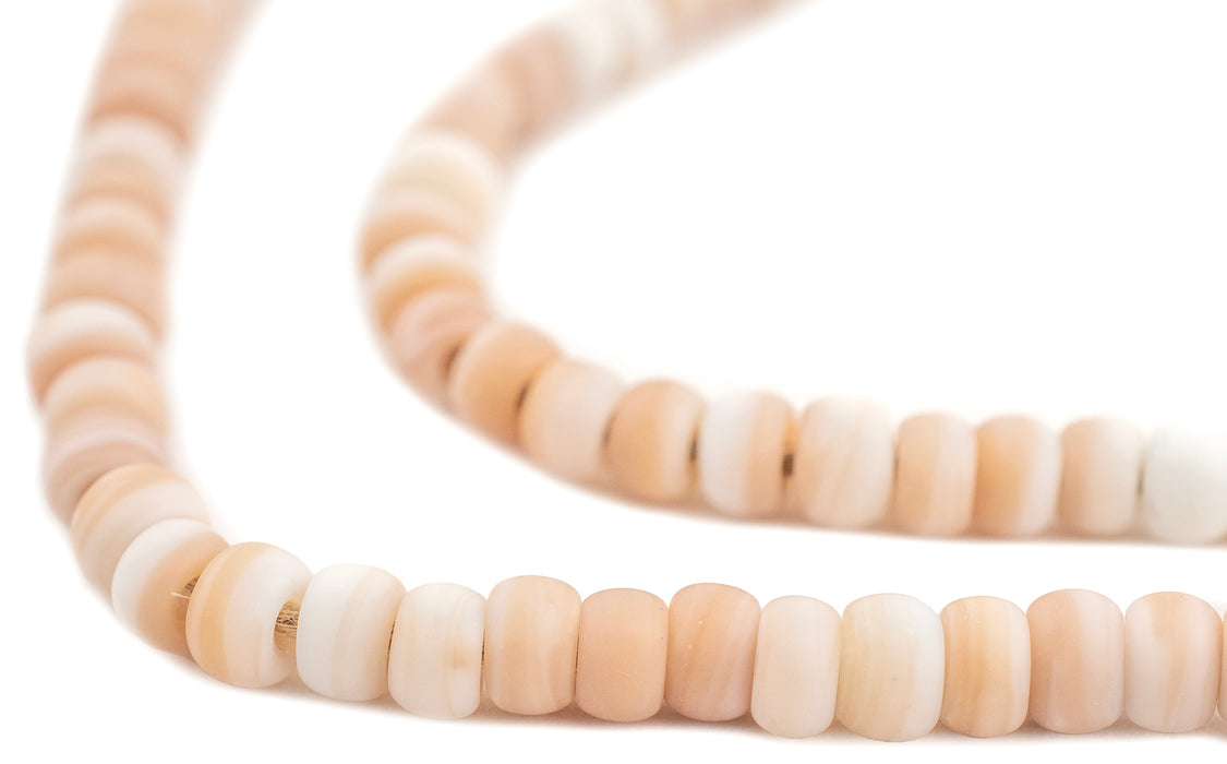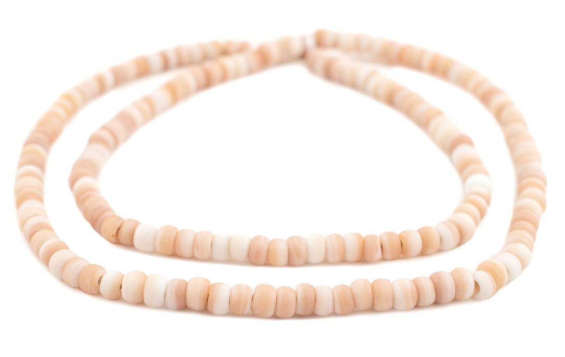 Elevate your jewelry creations with these lovely Peach-tone Padre Beads. Perfect for crafting bracelets, necklaces, and earrings the simple rounded shape of these beads can come in handy when designing. The gradient peach and white tones throughout the strand provide a variety of textures and color tones for your jewelry creations. Each bead measures roughly 4 x 6mm with a hole size of about 1mm. You will receive one full strand measuring approximately 24" in length. Color tones and textures may vary from strand to strand. Add this great strand of peach-toned beads to your design toolkit today.