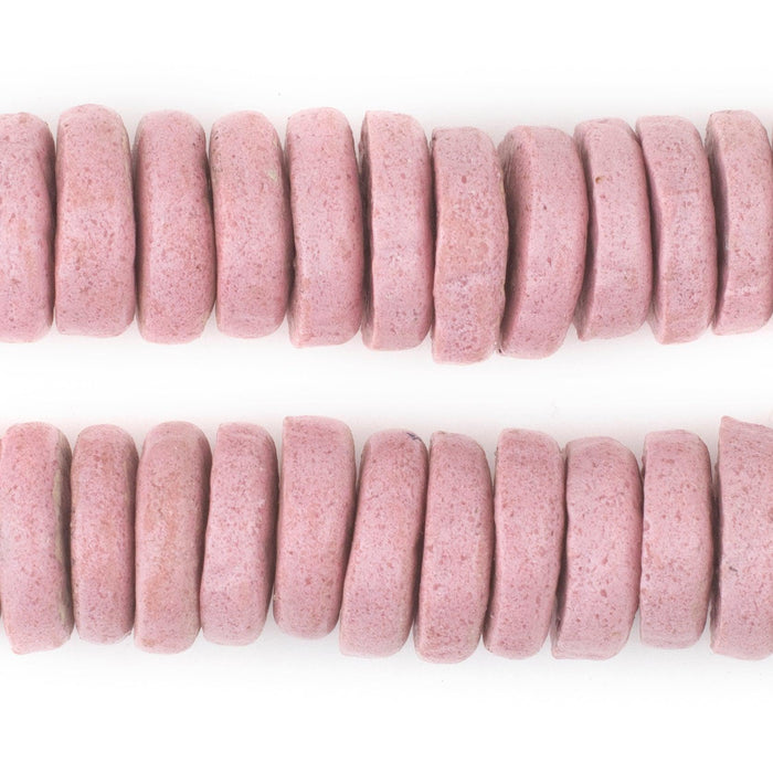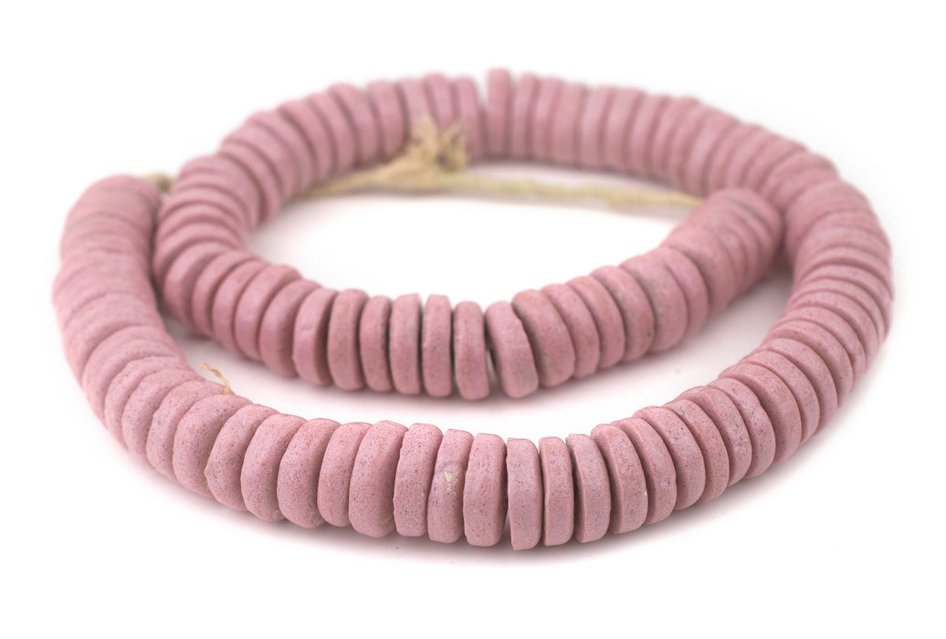 Checkout this beautiful strand of Ashanti glass disk beads. The process of making these beads is unique to Africa and has been used for over 1000 years. Pulverized glass of various colors is poured into a clay mold, using a cassava stem for the bead's hole. The mold is placed in a furnace and heated until the glass particles congeal without actually melting and the stem burns out. The Ghanaians have been making beads in this manner since the 1600s. Each bead measures approximately 6 x 19-20mm with a hole size of approximately 3-4mm. You will receive a full strand measuring approximately 28". Available in many colors.