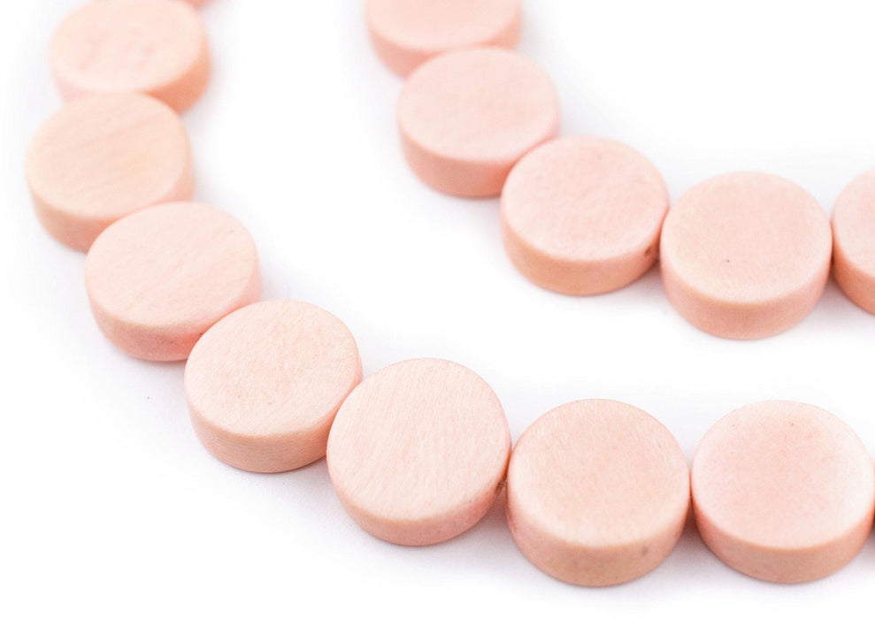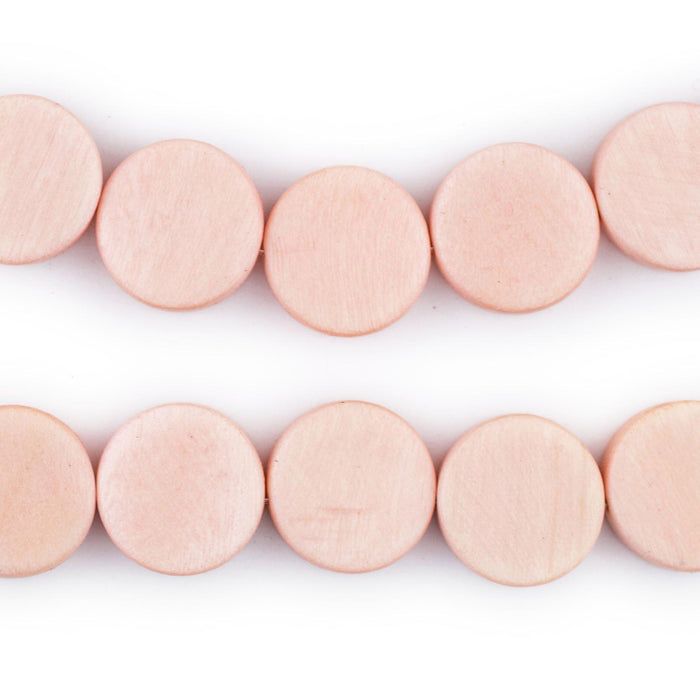 Pink Circular Natural Wood Beads (15x15mm)