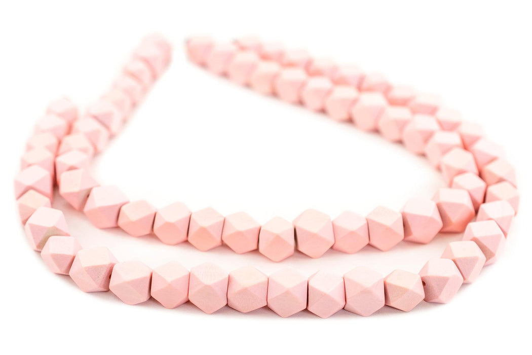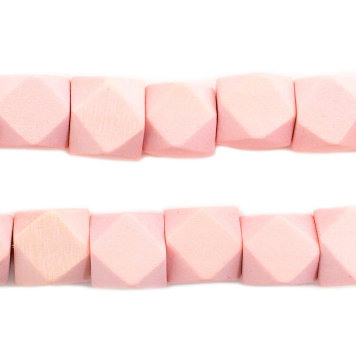 Pink Diamond Cut Natural Wood Beads (12mm)