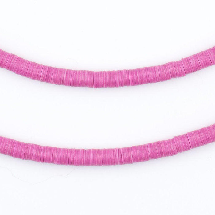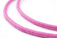 Take a look at this beautiful strand of African vinyl beads in a pink color. Beads such as these are found in Ghana and Nigeria where they are sometimes worn as waist beads. Older versions of vinyl beads were said to be made from recycled phonograph records. This strand measures approximately 34" long with individual beads measuring 0.28 x 4mm. These beads are light and fun to wear and also versatile for jewelry designs. Each strand is sold individually.