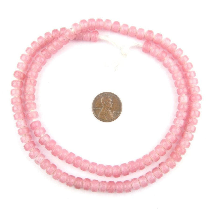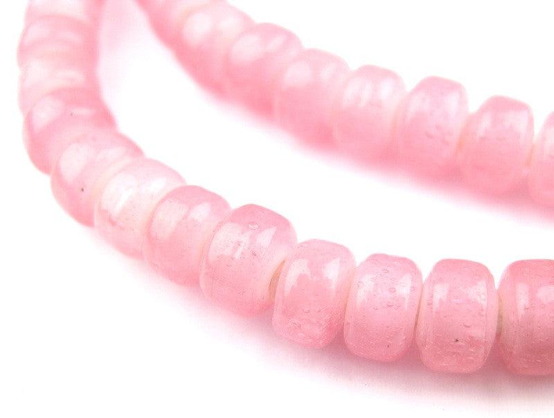 Checkout this beautiful strand of translucent pink white hearts! The strand measures approximately 24", with beads measuring about 5mm wide by 7mm in diameter.