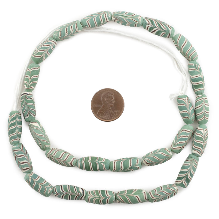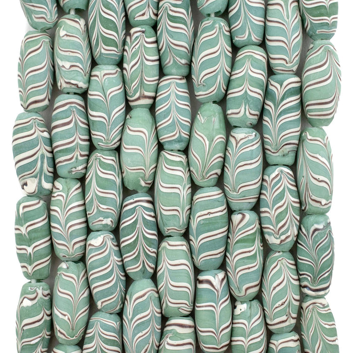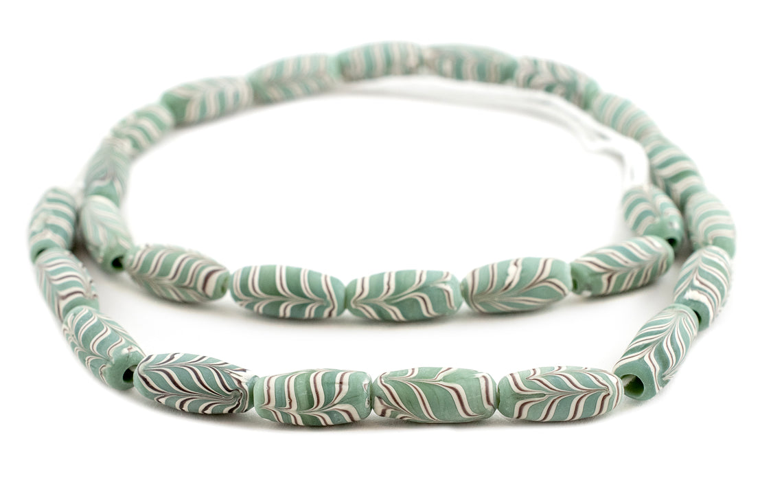 Embrace the allure of Venetian opulence with our exquisite Indonesian-made glass feather beads. Drawing inspiration from antique Venetian feather beads, these masterfully crafted pieces encapsulate timeless beauty and artistic tradition. Each bead, measuring 17 x 8mm, showcases intricate patterns and vibrant colors, reminiscent of age-old Venetian designs. With a convenient hole size of approximately 3mm, these beads are perfect for your jewelry creations. Each 23-inch strand is meticulously strung with approximately 25 beads, ensuring consistency and quality for your designs. Whether you're crafting a statement necklace or an elegant bracelet, these beads will add an unmistakable touch of vintage charm and sophistication. Experience the blend of Indonesian craftsmanship and Venetian heritage with these stunning beads, ready to elevate your jewelry pieces to the realm of art.
