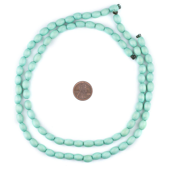 Pistachio Green Oval Natural Wood Beads (9x6mm)