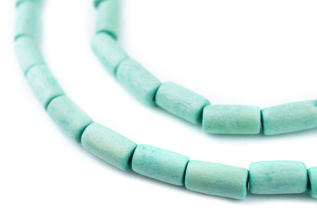 Pistachio Green Tube Natural Wood Beads (15x8mm)