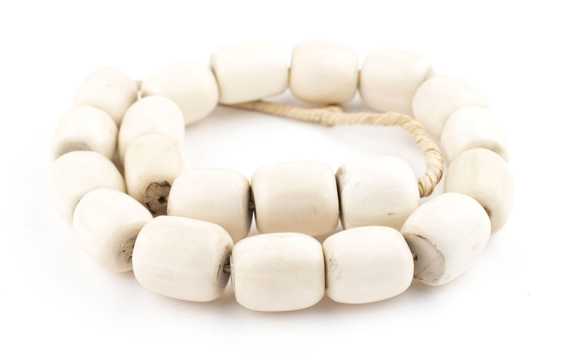Admire this beautiful strand of bone beads from Kenya. While Kenyan bone beads are common in a variety of shapes and styles, these beads come in a hard-to-find cylinder shape. East African bone beads are handcrafted by artisans using recycled cow bone. Each bead is individually carved and polished, and is truly one of a kind.