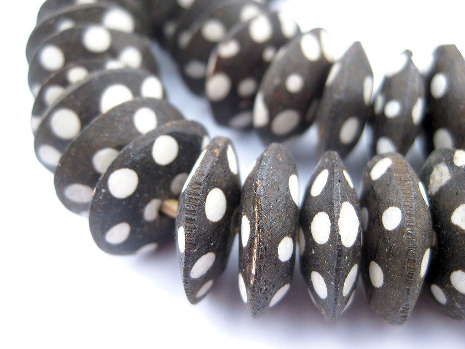 Admire this unusual strand of bone beads from Kenya. While Kenyan bone beads are common in a variety of shapes and styles, these beads come in a hard-to-find saucer shape. East African bone beads are handcrafted by artisans using recycled cow bone. Each bead is individually carved and polished, and is truly one of a kind.