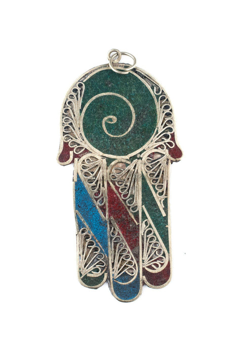 Premium Enamel Silver Moroccan Hamsa Pendant