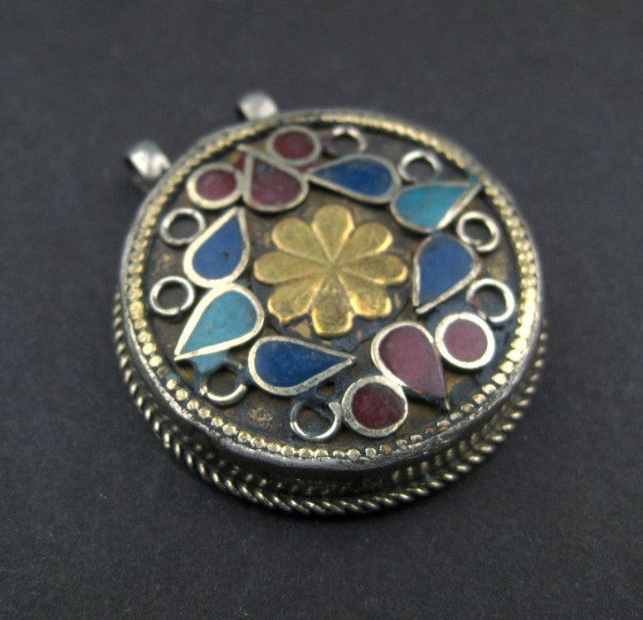 Premium Flower Inlaid Afghan Silver Pendant