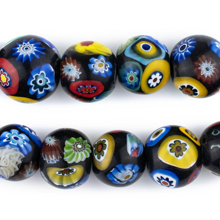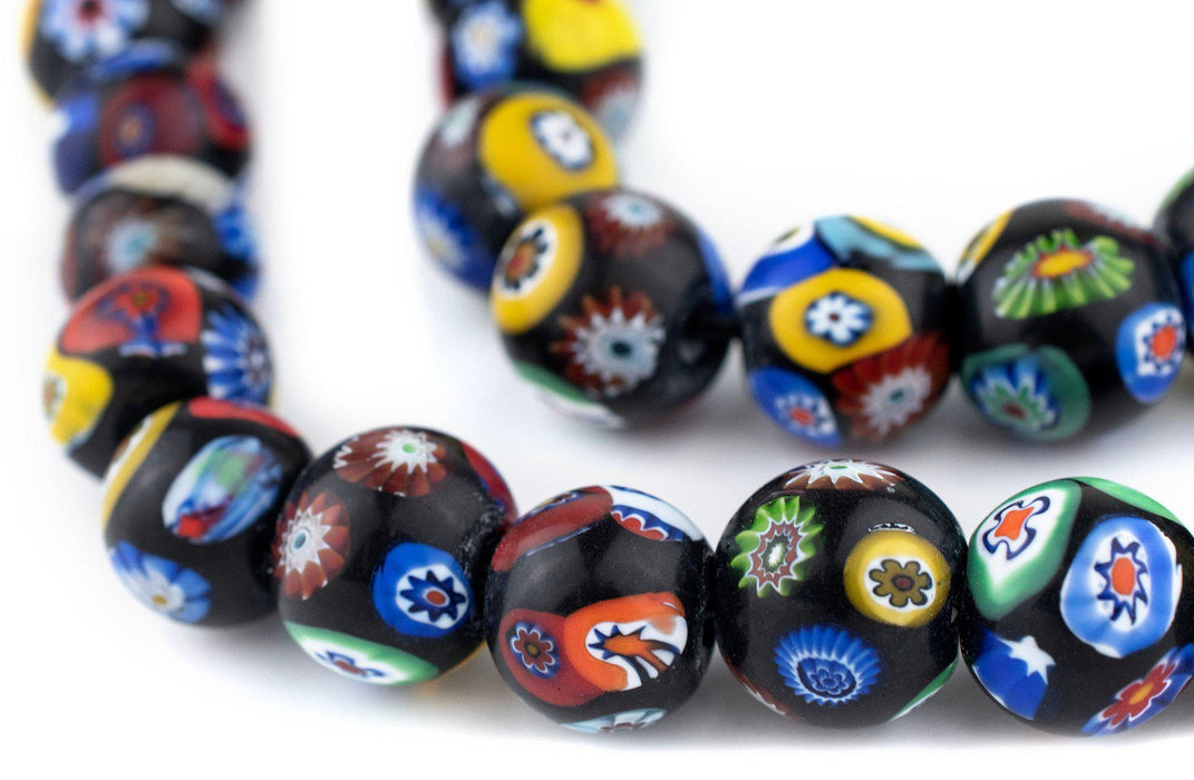 These exquisite millefiori beads are modeled after Venetian Trade Beads, made from multi-color chevron canes by slicing a glass cane, and forming it into the intricate flower designs these beads are known for. Because each bead is handmade individually, each one is unique and different with beautiful colors and variety of patterns and reflect artistic taste and craftsmanship. Each bead measures approximately 13-14 x 14-15mm with a hole size of approximately 2-3mm. Look carefully and you will see little flowers patterned into each bead.