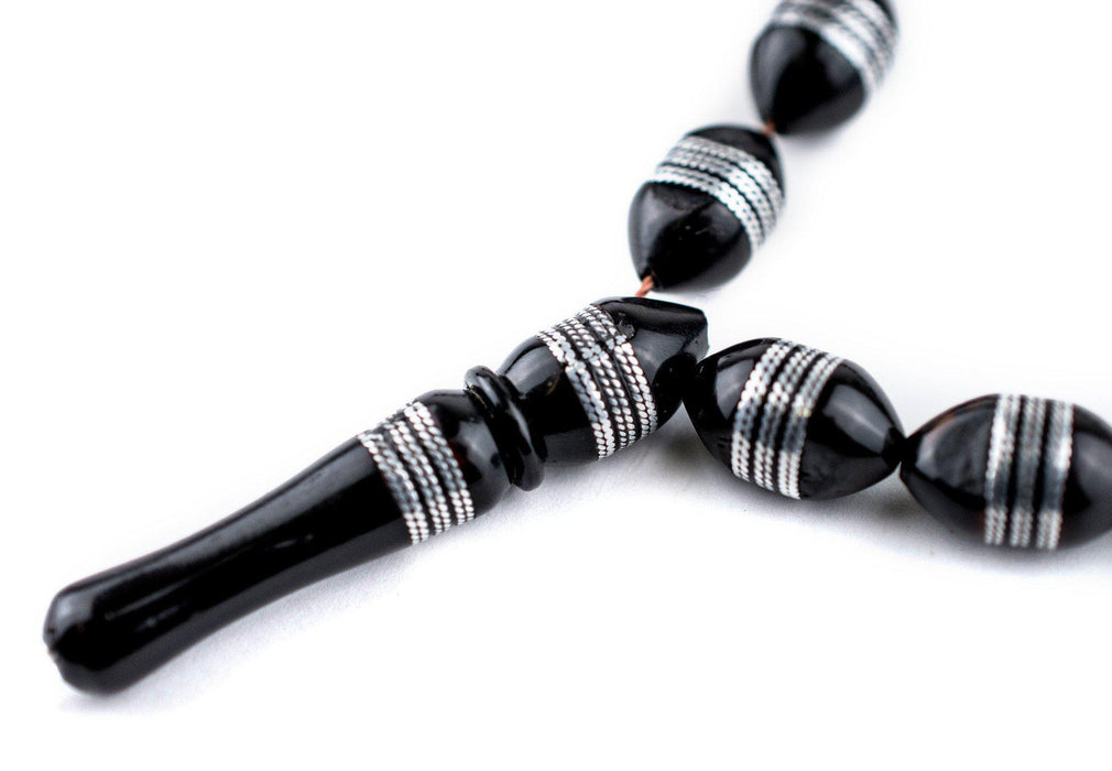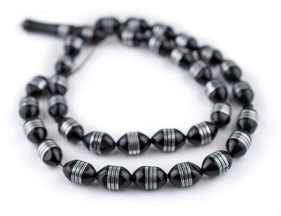 Premium Silver Inlaid Striped Oval Arabian Prayer Beads (14x9mm)