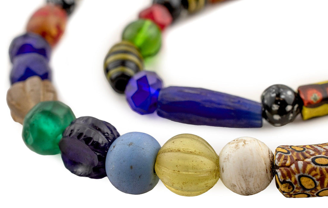 Looking for a truly unique strand of antique mixed trade beads? Then look no further. This beautiful strand of old african trade beads contains a medley of hard to find beads. Each strand is unique but strands may include special beads including Bodom beads, Murano Red good beads, Millefiore, Red white and blue beads, French cross, King beads, Old powder glass beads, Dog tooth beads, Cornaline d'Aleppo Venetian Trade Beads, Russian Blue, Floral Venetian Beads, and many other unusual varieties of old African Trade Beads. These beads are for the designer and collector alike. You will receive the exact strand pictured. Some beads may be cracked and/or show signs of age. These mixed beads are truly exceptional!