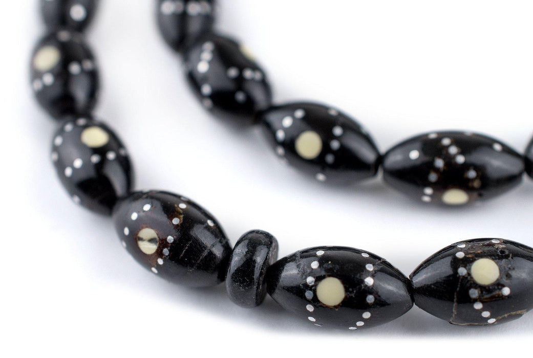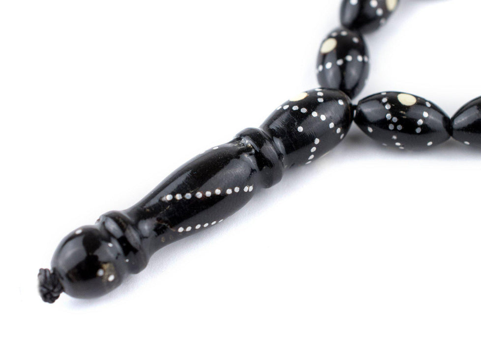 Protective Eye Silver-Inlaid Black Coral Arabian Prayer Beads (13x8mm)