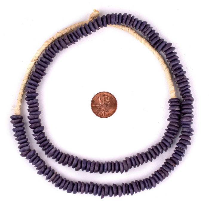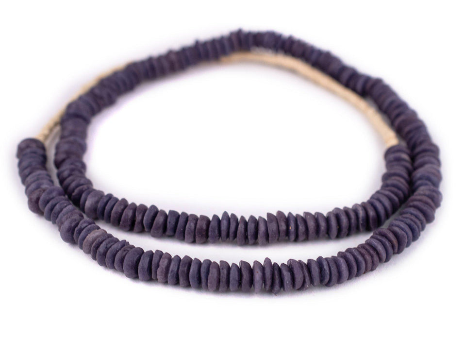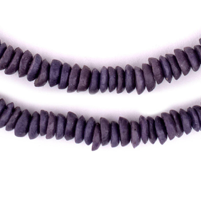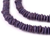 Checkout this beautiful strand of purple color Ashanti glass saucer beads. The process of making these beads is unique to Africa and has been used for over 1000 years. Pulverized glass of various colors is poured into a clay mold, using a cassava stem for the bead's hole. The mold is placed in a furnace and heated until the glass particles congeal without actually melting and the stem burns out. The Ghanaians have been making beads in this manner since the 1600s. Each bead measures approximately 2-3 x 9-10mm with a hole size of approximately 2mm. You will receive a full strand measuring approximately 28". Get yours today!