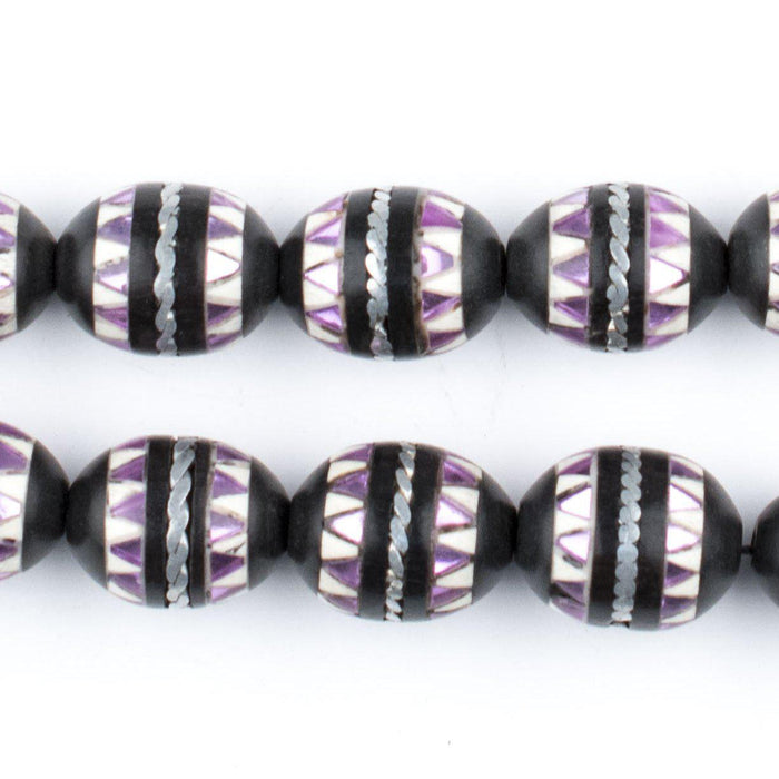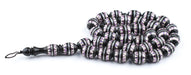 Evocative of a lost world, these beautiful Arabian prayer beads have been handcrafted by a master artisan. Look carefully and you will see that each bead has been exquisitely inlaid in meticulous detail, a quality of work hard to find in today’s day and age. The refined quality of these beads belies the long journey they have traveled through the back alleys and markets of North Africa. Prayer beads such as these embody the intersection artistic expression and faithful devotion that are a cornerstone of the Islamic world. Each bead on this strand measures approximately 6 x 11-12mm with hole size of 1mm and strand length of 28" long. Metal inlay may not be sterling. Use as-is or to accent your beaded creations. Limited Supply. Get yours today!