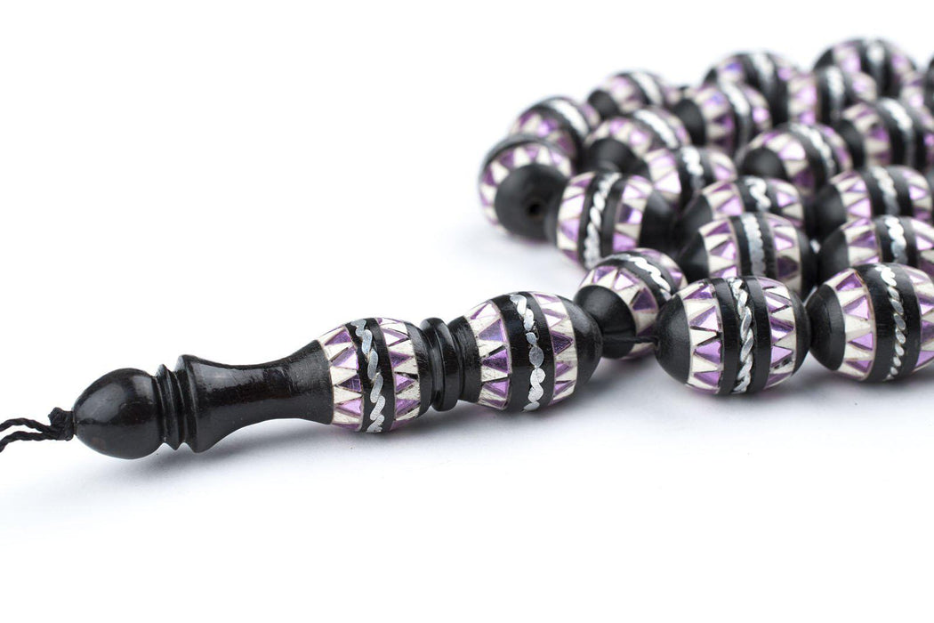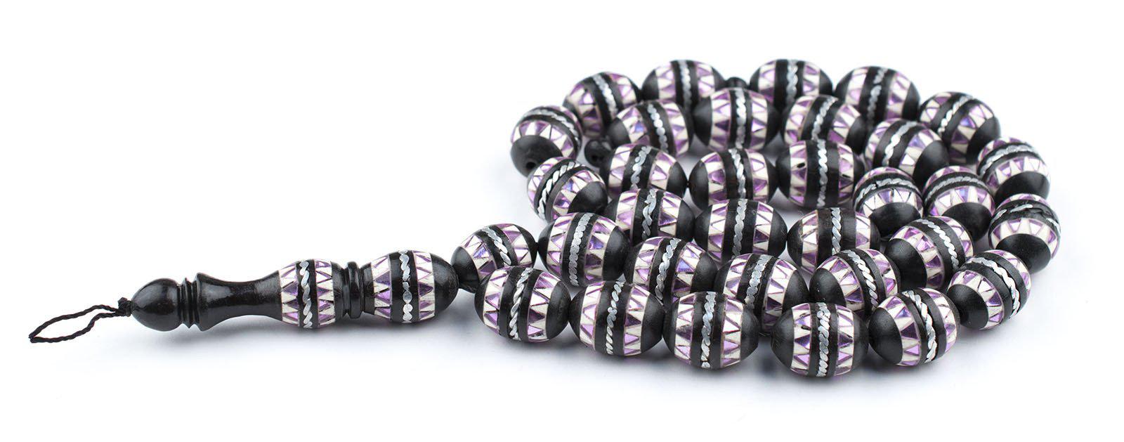 Purple Mosaic Inlaid Ebony Arabian Prayer Beads