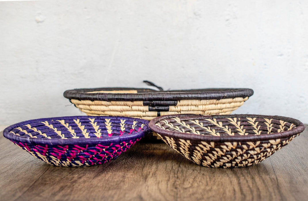 Take a look at this lovely woven plate. Woven out of Napier grass, also commonly referred to as Elephant grass, the material for these beautiful baskets is plentiful and fast growing, making basket-weaving an easy tradition for local craftspeople. Each Ugandan basket we sell is handcrafted by a master artisan, and dyed in elegant designs. These baskets are great as home decor items. Each Basket is approximately 8-10 inches in diameter and may vary slightly from the photo. Grab one of these stunning pieces for yourself today!