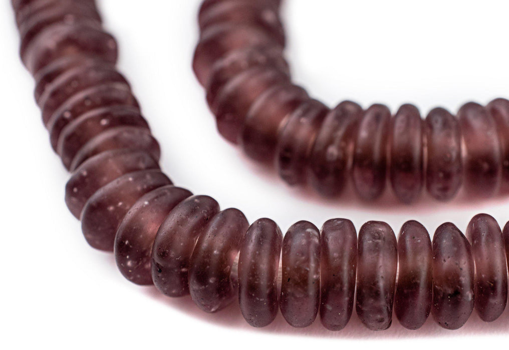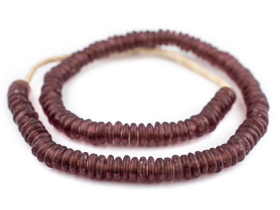 These great beads are made by the Krobo People of Ghana, Africa. Powder glass beads are made by crushing glass to a fine powder and heating it so that the particles fuse together. The glass is then poured into clay molds, with a cassava leaf stem used to make the hole. They are baked in an oven and the glass fuses and the cassava stem burns up. This technique has been used in Africa for centuries. Due to age, some beads may be chipped.