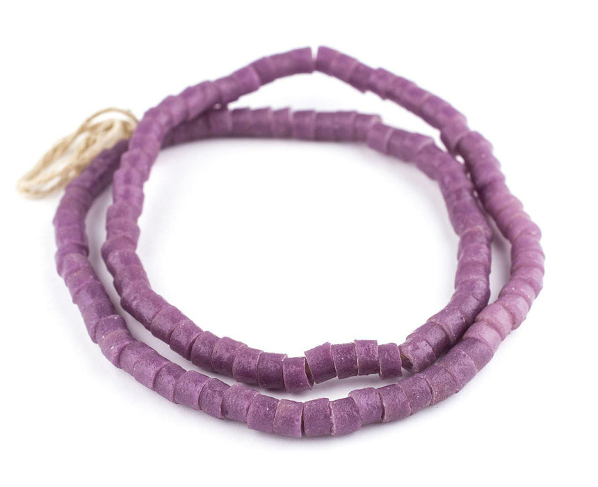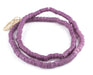 Checkout this beautiful strand of purple sandcast beads from Ghana, West Africa. The process of making these beads is unique to Africa and has been used for over 1000 years. Pulverized glass of various colors is poured into a clay mold, using a cassava stem for the bead's hole. The mold is placed in a furnace and heated until the glass particles congeal without actually melting and the stem burns out. The Ghanaians have been making beads in this manner since the 1600s.