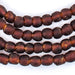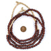 Recycled glass beads are a type of indigenously produced African bead from Ghana West Africa. These beautiful brown color recycled beads are made using an old method that has been used for centuries. The glass itself is derived from a variety of recycled sources including old beverage and medicine bottles. The procedure for making the beads consists of a number of steps whereby powdered glass is poured into molds of clay and baked in a specialized oven. These beads are produced in large part by the Krobo tribe and through recycling glass are environmentally friendly. Multiple strands pictured. Each strand is sold individually.