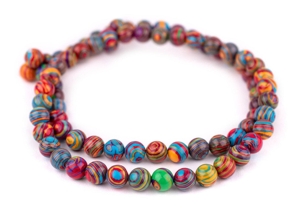 These whimsical stone beads are fashioned in a banded pattern similar to that of malachite gemstone. Available in a variety of sizes and colors, this round bead measures 10 x 10mm with approximately 38 beads on each 14" strand. Try a strand of these super fun beads today!