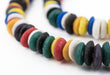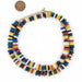 Checkout this beautiful strand of multicolor Ashanti glass saucer beads. The process of making these beads is unique to Africa and has been used for over 1000 years. Pulverized glass of various colors is poured into a clay mold, using a cassava stem for the bead's hole. The mold is placed in a furnace and heated until the glass particles congeal without actually melting and the stem burns out. The Ghanaians have been making beads in this manner since the 1600s. Each bead measures approximately 2-3 x 8-10mm in size, with strands measuring approximately 24". Shade of beads may vary slightly from photo. Beautiful beads at a great price!