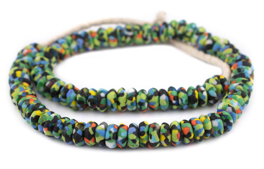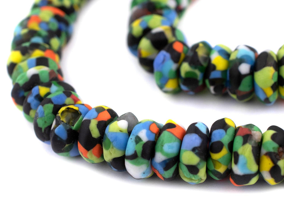 Rainbow Medley Fused Rondelle Recycled Glass Beads (14mm)