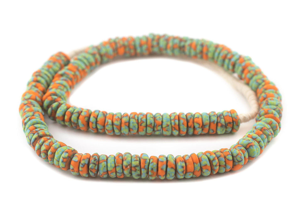 Rainforest Green Fused Rondelle Recycled Glass Beads (11mm)