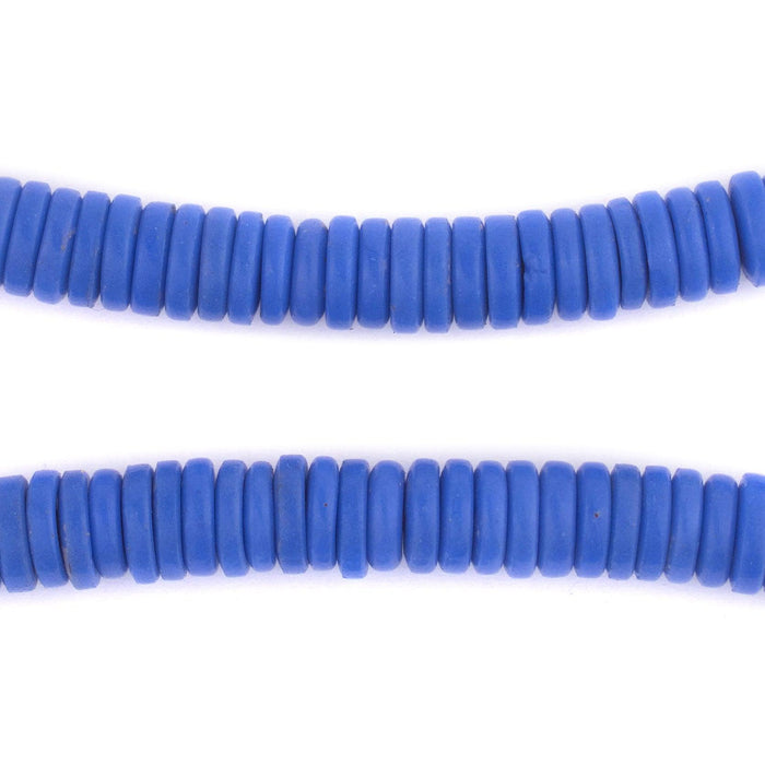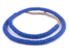 These versatile blue beads are smooth and worn to touch. Found in Nigeria, West Africa, vintage Czech beads such as these were made in Central Europe during the 19th and 20th centuries and exported to Africa. Each 28" strand contains approximately 230 beads measuring 2 x 9mm. The generous 2mm hole size make them well suited for use with thicker cord such as leather. Each strand is unique and shade of blue may vary slightly as illustrated in photo.
