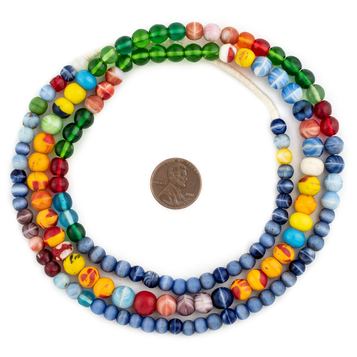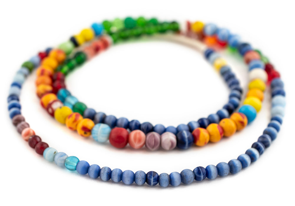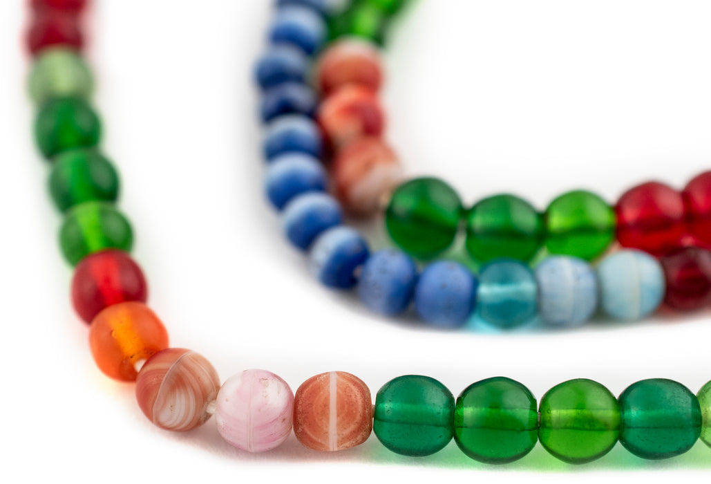 The unique look of Kakamba beads is easily recognized among the beads of Africa. Originally produced in former Czechoslovakia, these beads are made using a special process whereby glass is pressed in a mold. Also known as Prosser beads, these fun vintage African trade beads come in a variety of different colors and combinations. While these beads typically come in an abacus or rondelle shape, this more rare variety is spherical. Each bead measures approximately 6-8 x 7-8mm, with a hole size of <1mm. You will receive the exact strand pictured measuring approximately 34". There are around 120 beads on the strand. Grab this strand for yourself before it's gone.