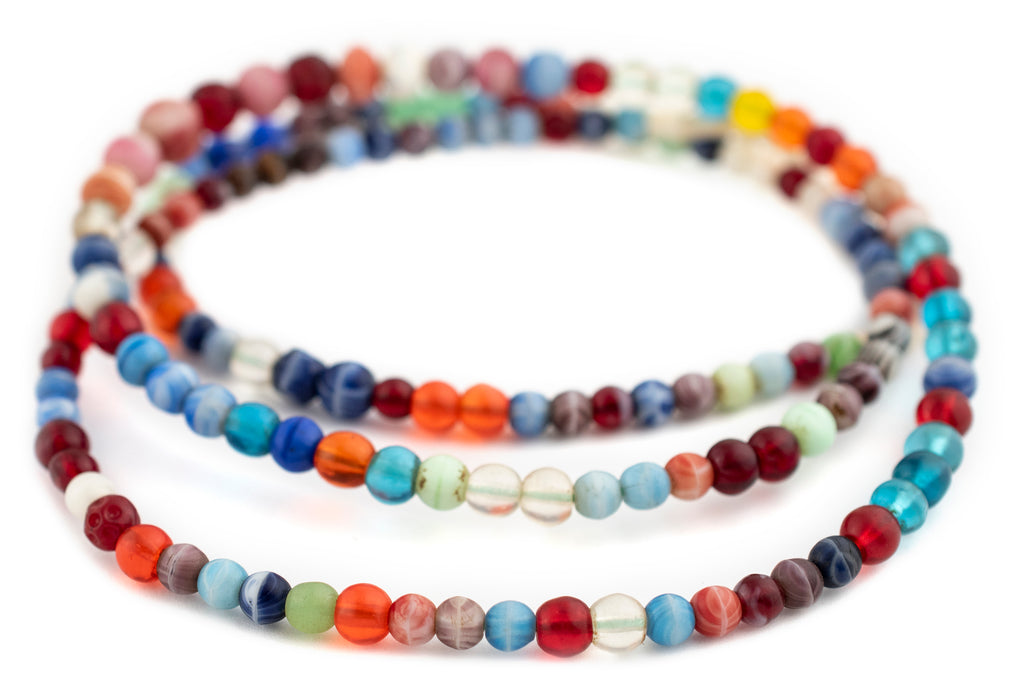 The unique look of kakamba beads is easily recognized among the beads of Africa. Originally produced in former Czechoslovakia, these beads are made using a special process whereby glass is pressed in a mold. Also known as prosser beads, these fun vintage African trade beads come in a variety of different colors and combinations. Each strand is unique. You will receive the exact strand shown in the photo. Each bead measures approximately 6-9 x 6-10mm, with a hole size of approximately 1mm. You will receive one strand measuring approximately 37". There are around 144 beads on each strand. Grab this one of a kind item for yourself today!