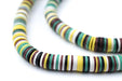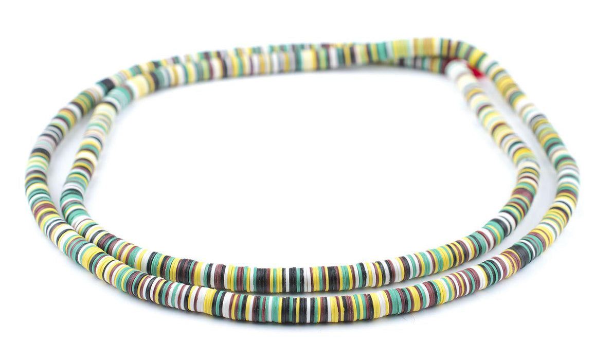 Take a look at this beautiful strand of African vinyl beads in a multicolor color. Beads such as these are found in Ghana and Nigeria where they are sometimes worn as waist beads. Older versions of vinyl beads were said to be made from recycled phonograph records. This strand measures approximately 32" long with individual beads measuring 1 x 6mm. These beads are light and fun to wear and also versatile for jewelry designs. Each strand is sold individually.