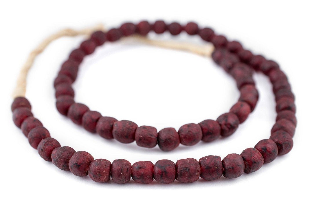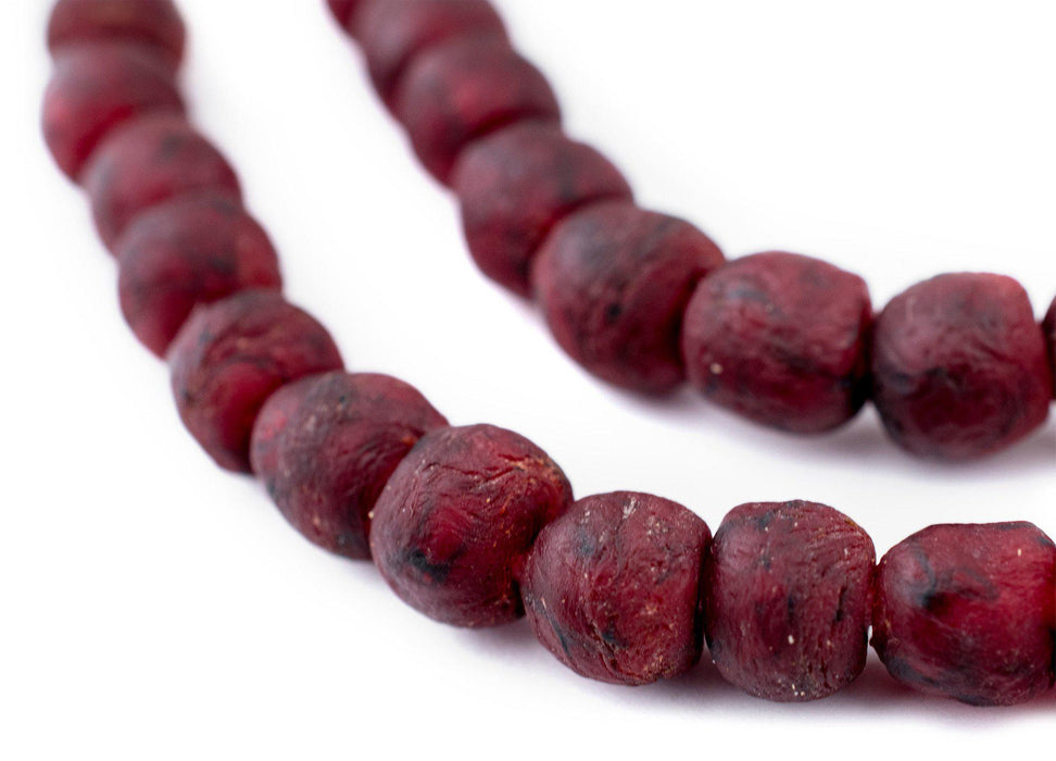 We love the classic deep Red and Black Swirl color of these beautiful Recycled Glass Beads! Artisan beads like this are handmade in Ghana, Africa. If you take a closer look you will notice an exceptional smoothness that each and every bead has. We suggest pairing these beads with some of our natural stone beads like Jade and Turquoise to make for an interesting accent. Every bead strand is about 26" in length. Each bead is approximately 9-10 x 9-10mm with a roughly 2mm hole. Each strand is sold individually. Take home a strand for yourself today!