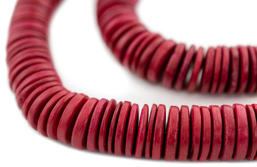 Red Disk Coconut Shell Beads (20mm) (10 Pack)