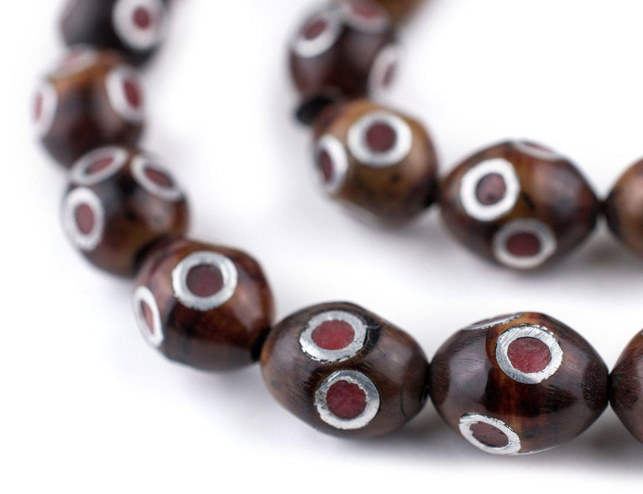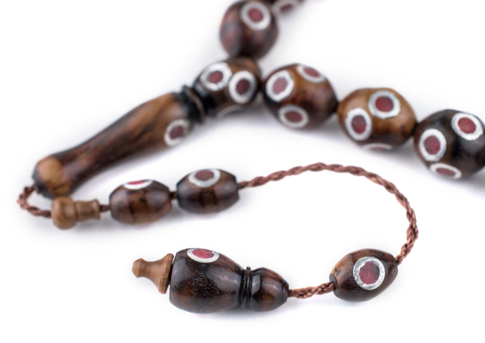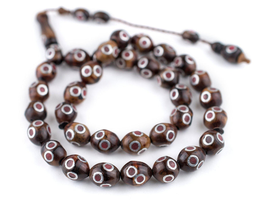 Red Eye Inlaid Oval Arabian Prayer Beads (13x11mm)