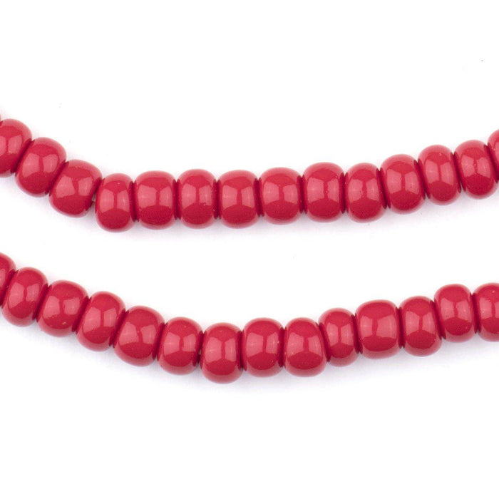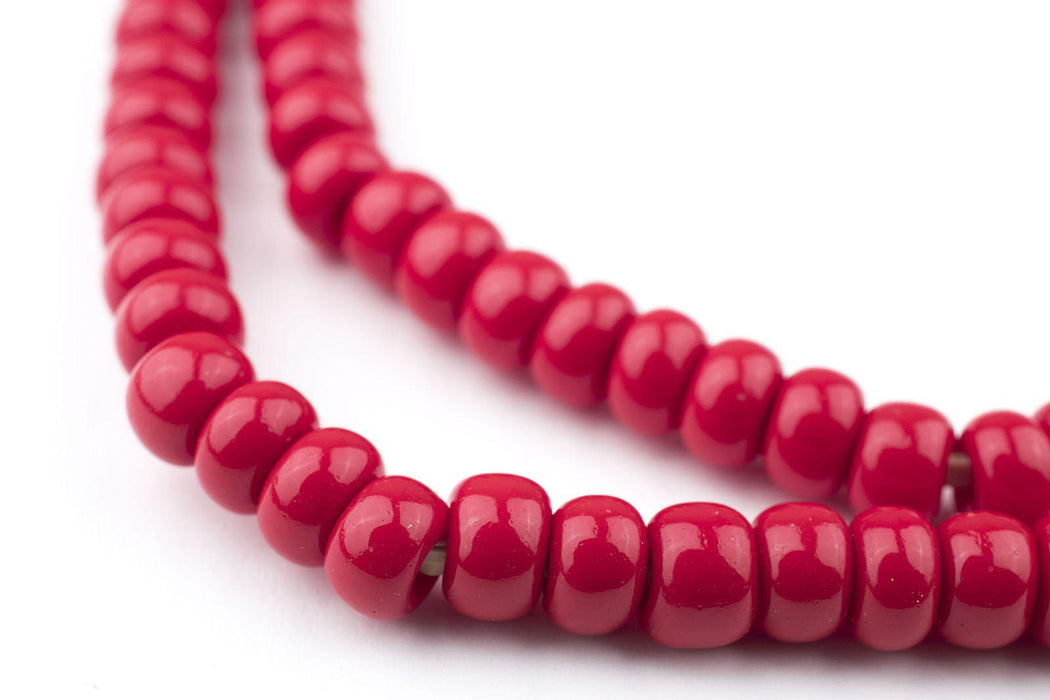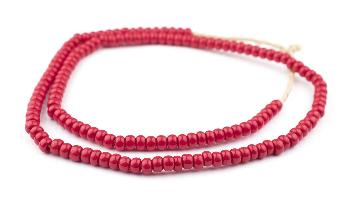 High-quality strand of red color small glass beads from Ghana. Each bead measures approximately 4 x 7mm with strand length of 27". Some variation in individual beads is shown as pictured. Use these as spacers or mix and match colors to express your unique style!