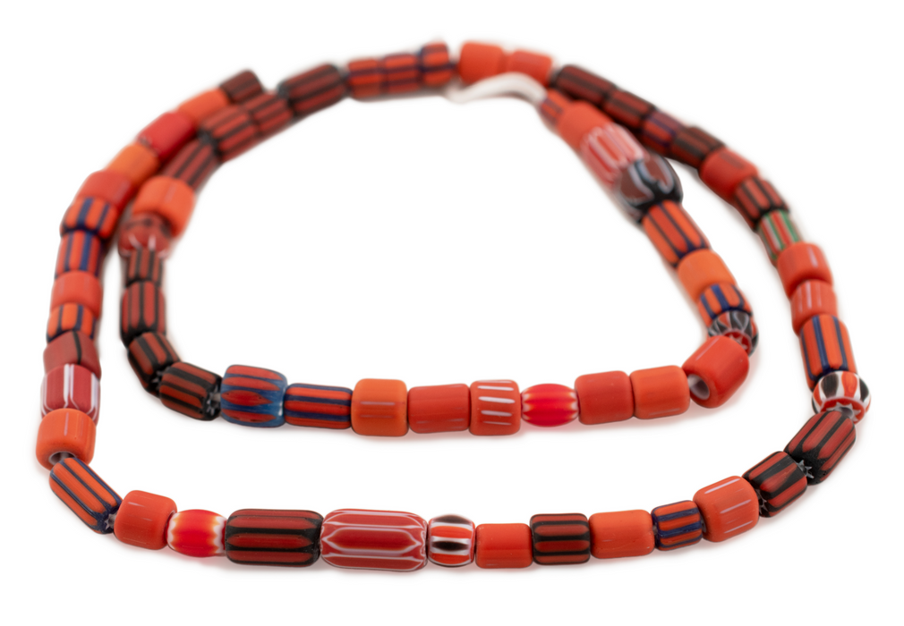 Take a look at this incredible strand of Chevron beads. These beads are inspired by the traditional Chevron beads of Venice, which are highly sought-after by bead collectors and bead lovers alike. They are considered among the classic beads of the African Trade. The first Chevron beads were made from Murano glass in the late 15th century and were characterized by their unique rosetta or star design made by alternating layers of glass. Over the subsequent centuries, Chevron beads were made for trade throughout Africa as well as the Americas where they may have been introduced by Christopher Columbus. These beads measure approximately 5-13 x 7-9mm in size (bead size may vary), with strands measuring approximately 27" in length. Get your strand today!